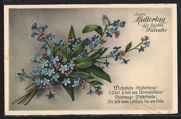 AK Glückwunsch zum Muttertag, Strauss aus Vergissmeinnicht