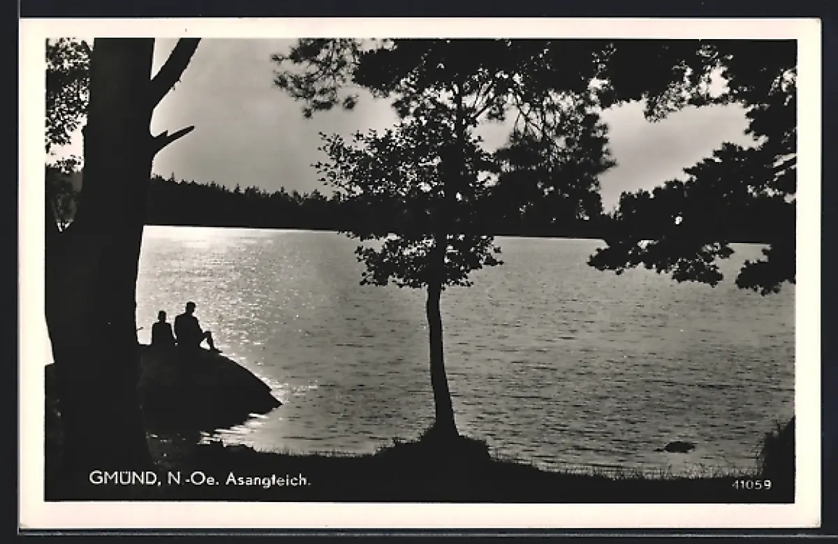 AK Gmünd /N-Oe., Abendlicher Seeblick mit Ausflüglern