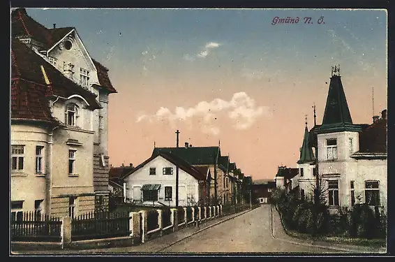 AK Gmünd /N.-Oe., Strassenpartie bei Dämmerung