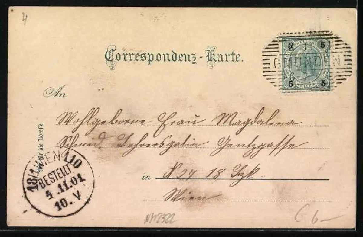 alte Ansichtskarte, gelaufen 1901, Eckknick unten rechts, guter Zustand