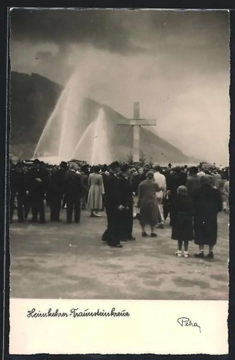 AK Gmunden, Heimkehrer, Traunsteinkreuz, Veranstaltung, Wasserfontänen