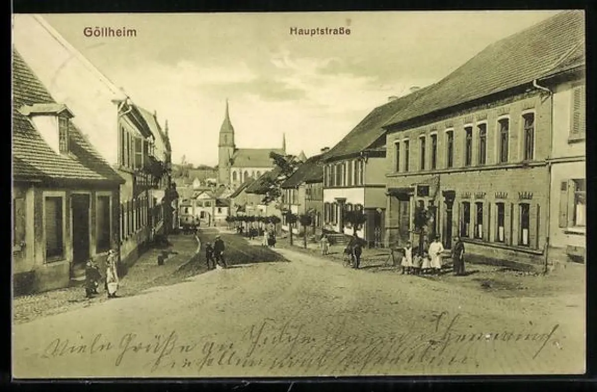 AK Göllheim, Hauptstrasse mit Blick zur Kirche