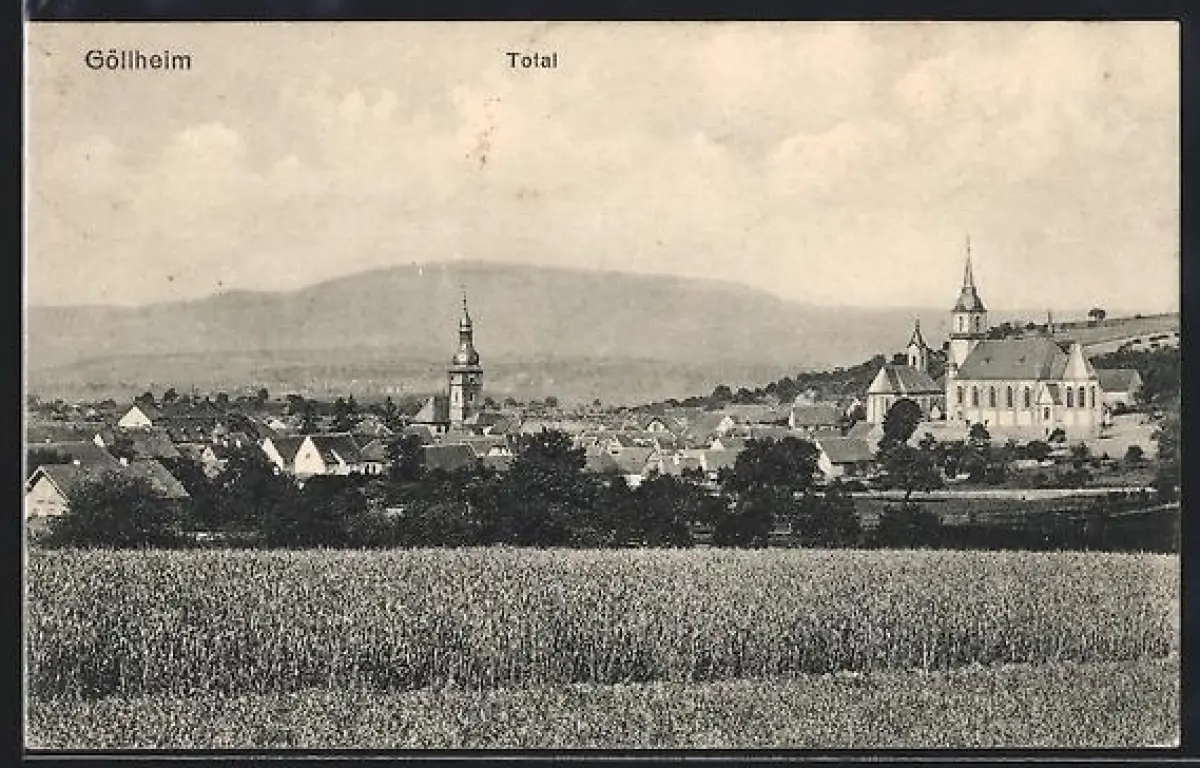 AK Göllheim, Totalansicht vom Feld aus