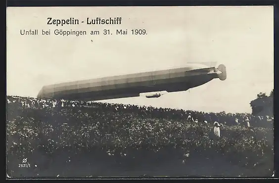 AK Göppingen, Zeppelin LZ 5 bei Unfall am 31. Mai 1909