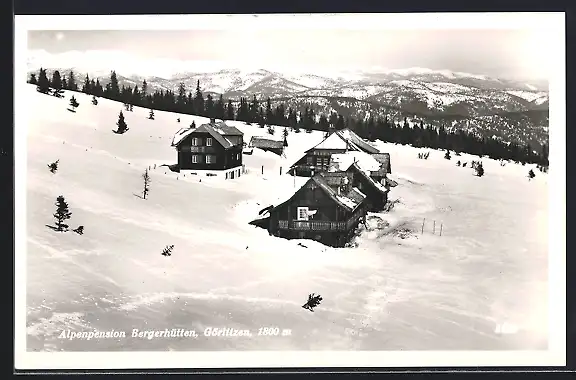 AK Görlitzen, Alpenpension Bergerhütten im Schnee