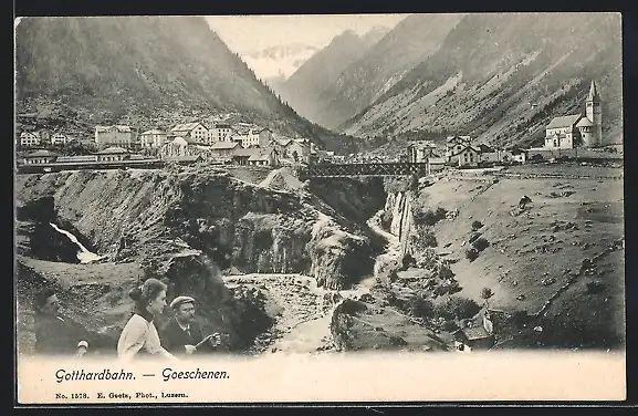 AK Goeschenen, Leute an der Gotthardbahn, um 1900