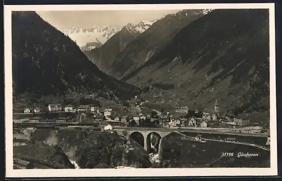 AK Göschenen, Ortsansicht mit Gotthardbahn