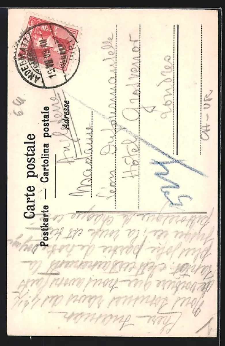 alte Ansichtskarte, gelaufen 1908, Eckknick rechts unten, guter Zustand