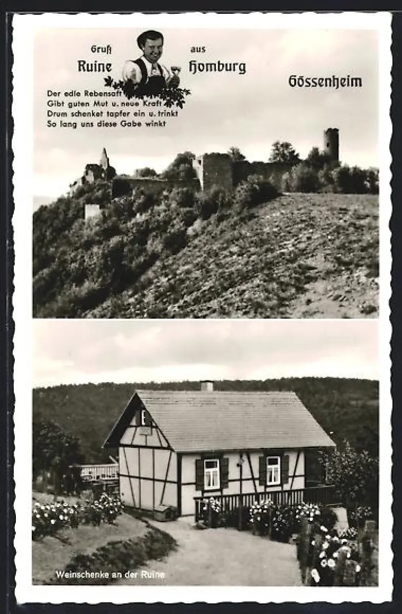 AK Gössenheim, Ruine Homburg, Gasthaus Weinschenke an der Ruine