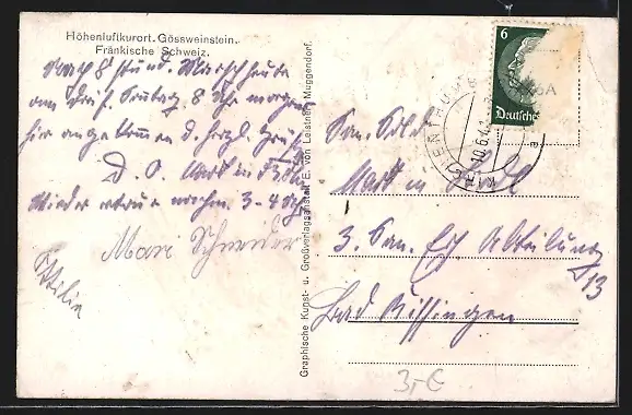 gelaufen 1941, Briefmarke tlw. entfernt, Eckknick oben links, guter Zustand