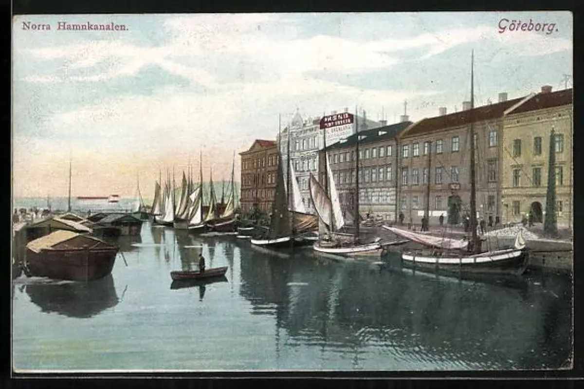 AK Göteborg, Norra Hamnkanalen, Segelboote im Hafen