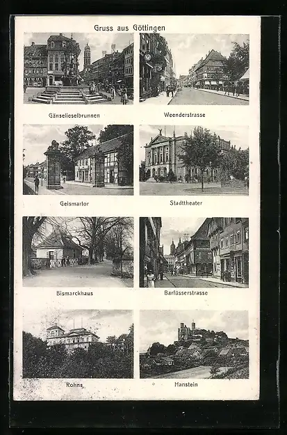 AK Göttingen, Gänseliesel-Brunnen, Barfüsserstrasse, Weenderstrasse