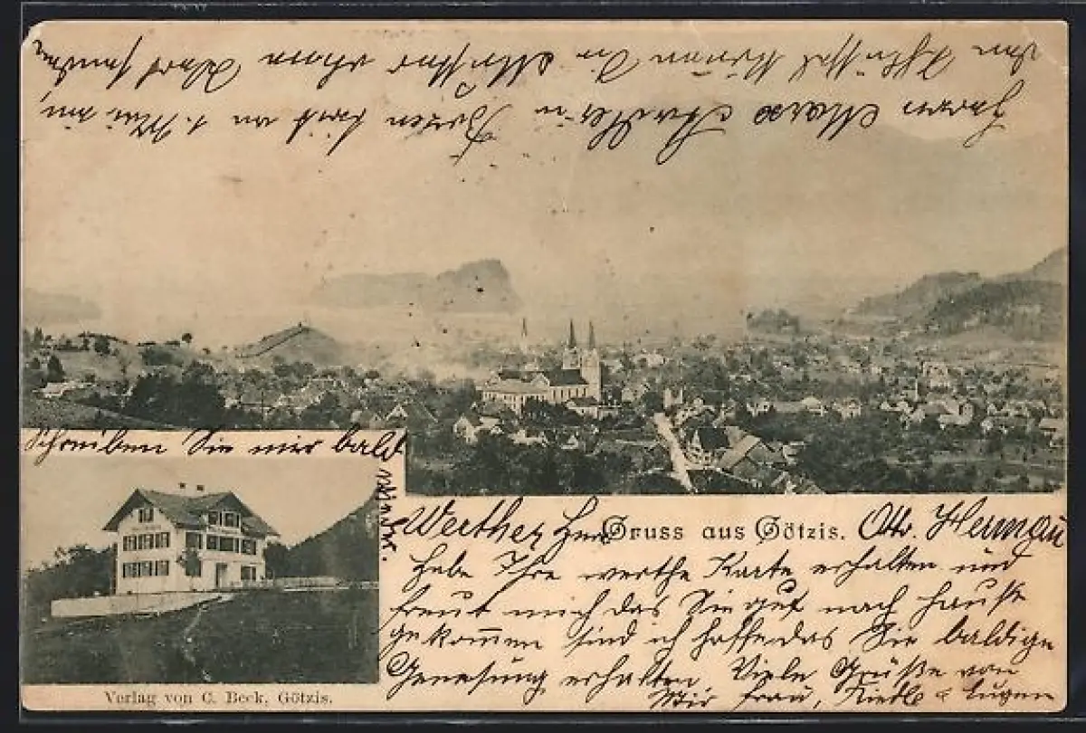 AK Götzis, Ortsansicht mit Villa Schönblick