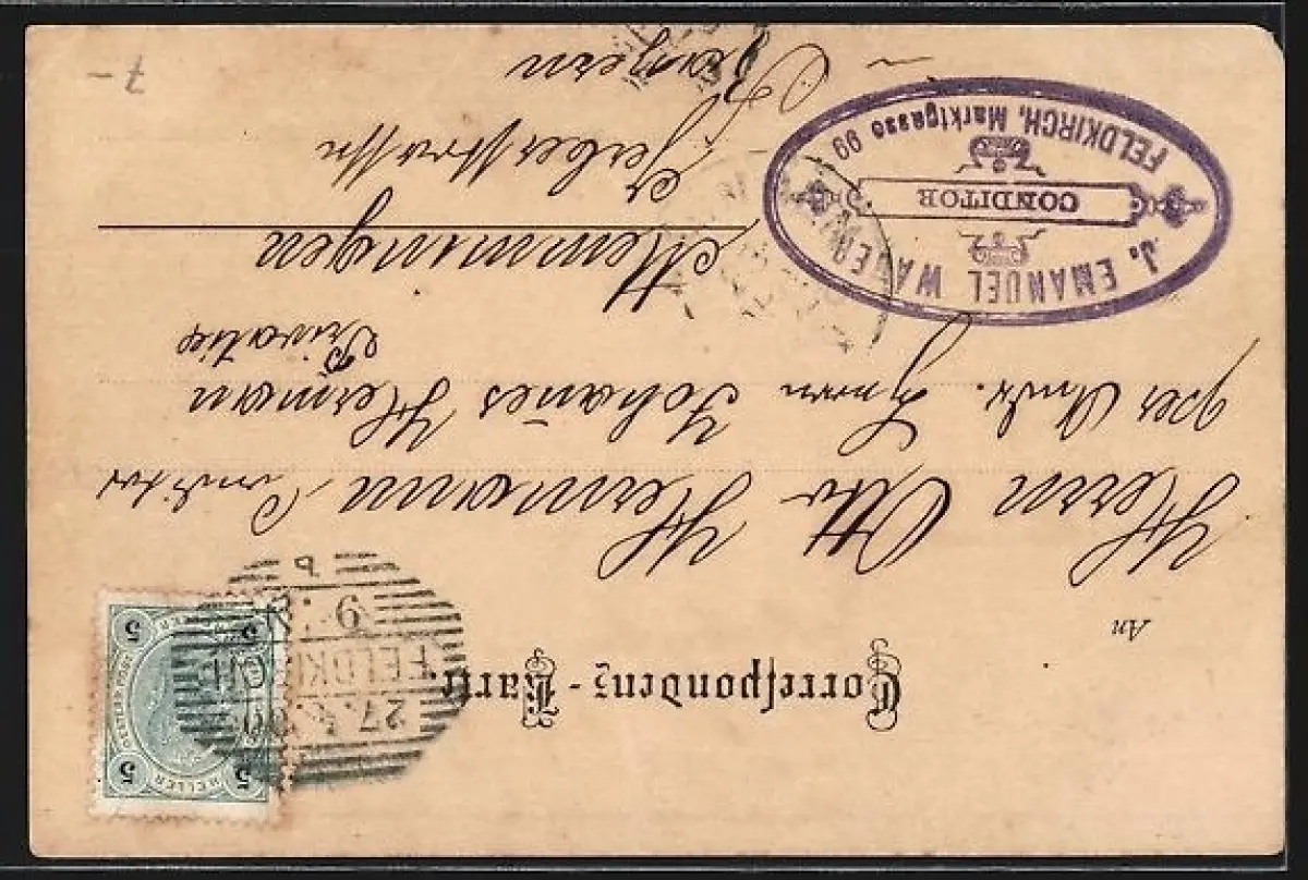 alte Ansichtskarte, gelaufen 1900, Eckknick re. oben, Eckstoß li. oben, guter Zustand
