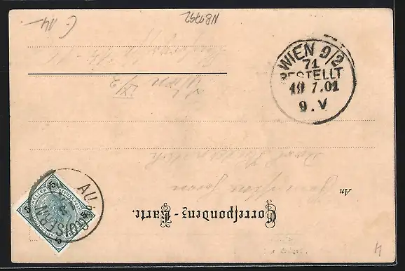 alte Ansichtskarte, gelaufen 1901, Stempelspur, guter Zustand
