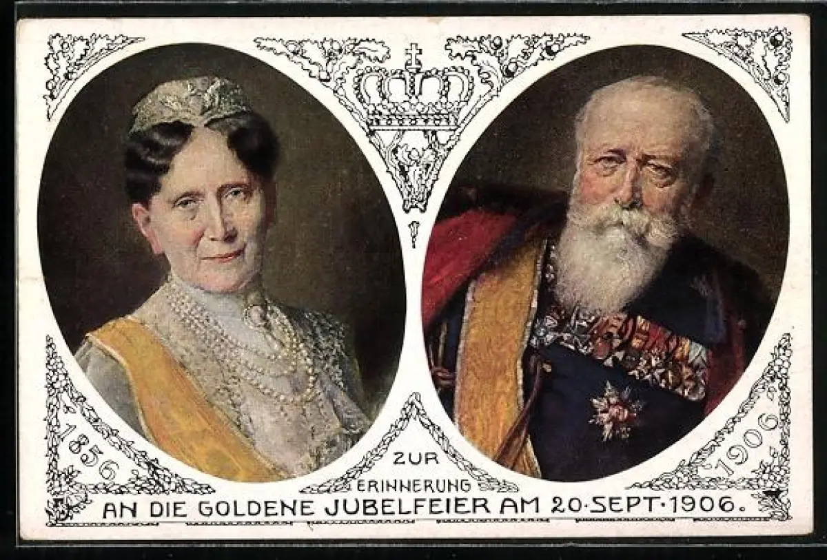 AK Goldene Hochzeit Grossherzog Friedrich u. Grossherzogin Luise von Baden 1856-1906, Porträts