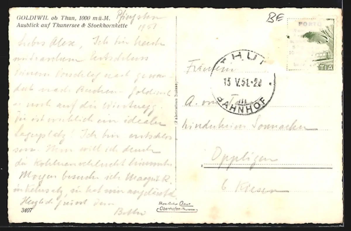 AK Goldiwil ob Thun, Ausblick auf Thunersee und Stockhornkette