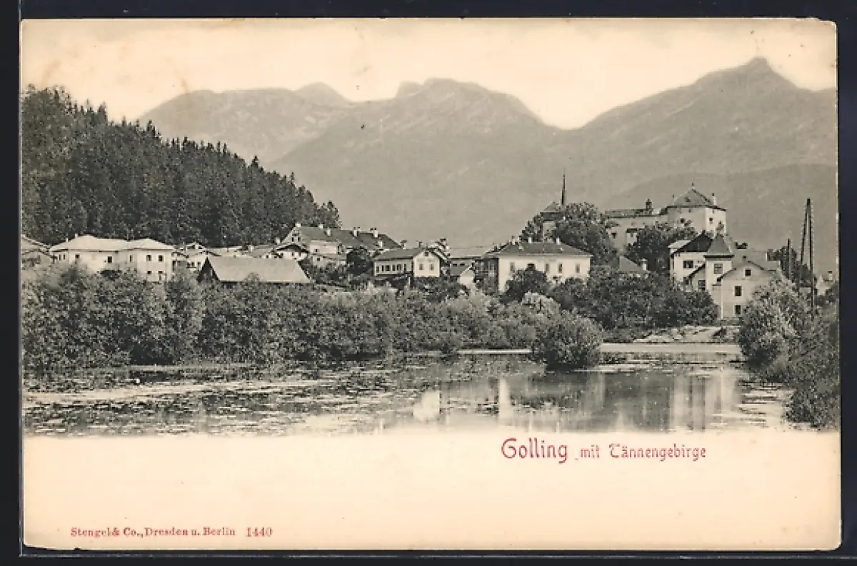 AK Golling an der Salzach, Teilansicht vom Ort mit Tännengebirge