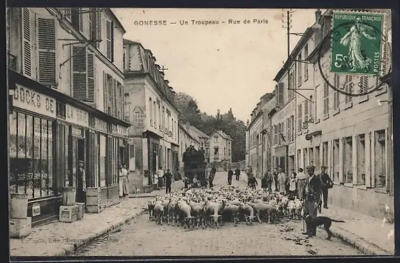 AK Gonesse, Un troupeau dans la Rue de Paris