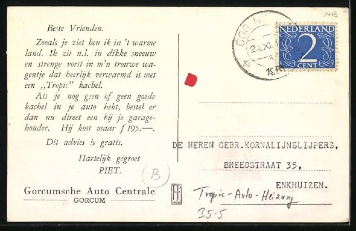 AK Gorcum, Reklame für die Tropic-Auto-Heizung, Gorcumsche Auto Centrale