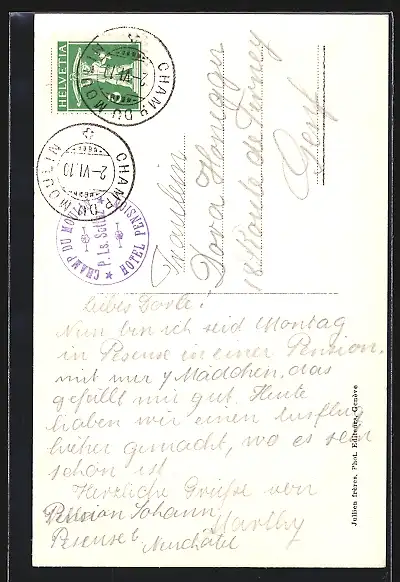 Personenbezogene Daten auf der Rückseite der Karte wurden durch blauen Textmarker unkenntlich gemacht. Die blauen Stellen sind auf die Vorderseite durchgeweicht und wirken sich negativ auf das Postkartenfoto aus