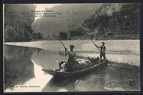 AK Gorges du Tarn, Un troupeau traversant le Tarn au Cirque des Baumes