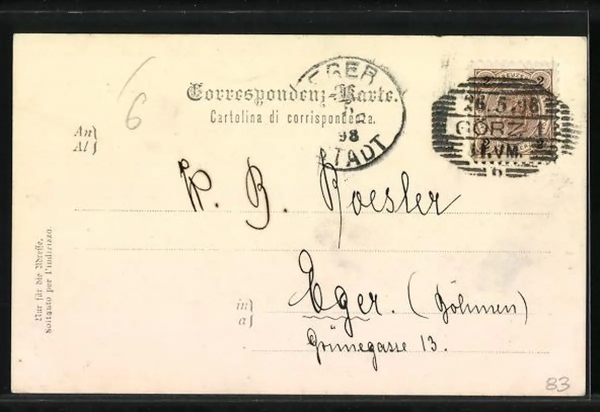 alte Ansichtskarte, gelaufen 1898, Stempelspur, guter Zustand