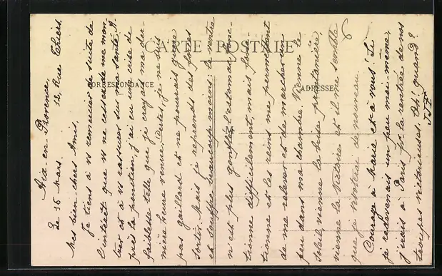 Personenbezogene Daten auf der Rückseite der Karte wurden durch blauen Textmarker unkenntlich gemacht. Die blauen Stellen sind auf die Vorderseite durchgeweicht und wirken sich negativ auf das Postkartenfoto aus