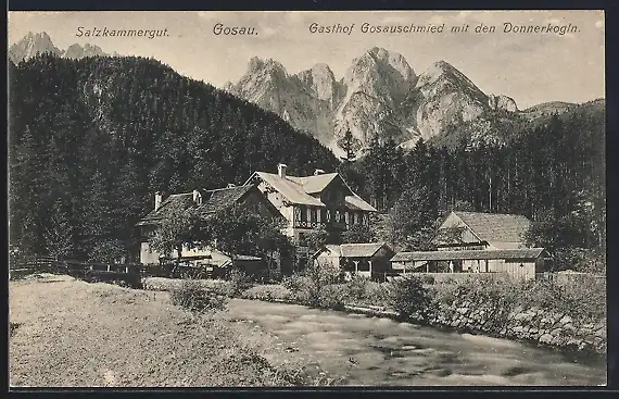 AK Gosau, Gasthof Gosauschmied mit den Donnerkogeln