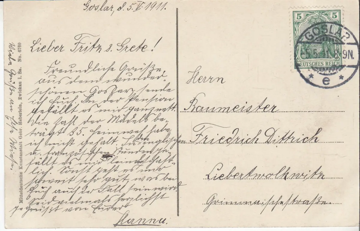 Mitteldeutsche Kunstanstalt Gebr. Heberlein, 1911. Karte, 9,0 x 14,0 cm