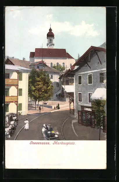 AK Gossensass, Markusplatz mit Blick zur Kirche