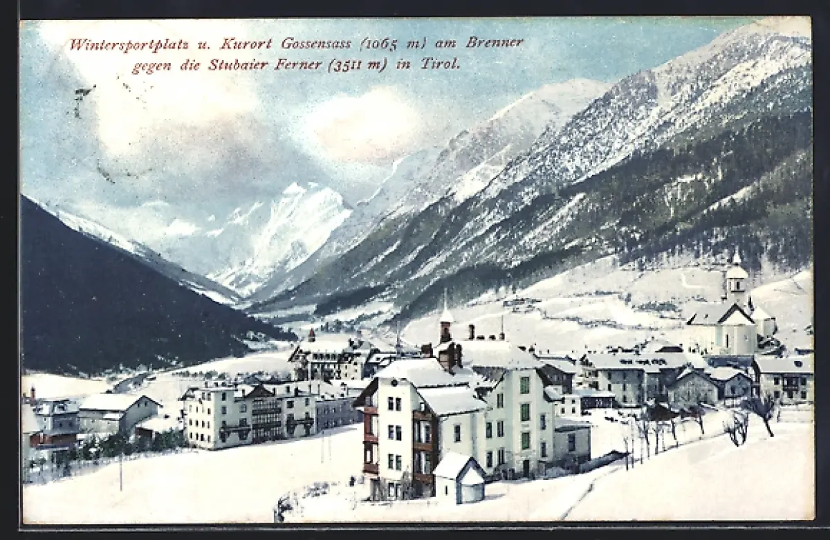 AK Gossensass, Ortsansicht gegen die Stubaier Ferner