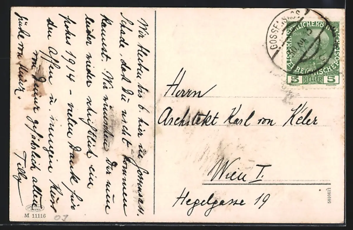 alte Ansichtskarte, gelaufen 1913, Stempelspur, guter Zustand