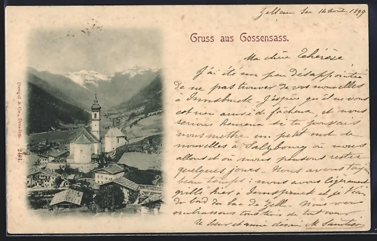 alte Ansichtskarte, gelaufen 1899, guter Zustand