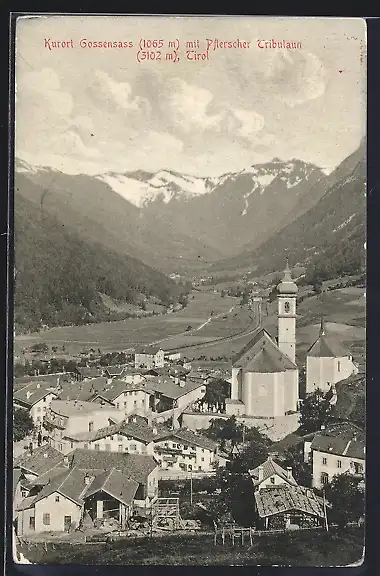 AK Gossensass, Teilansicht und Kirche mit Pflerscher Tribulaun