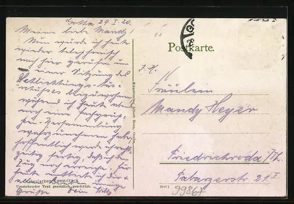 alte Ansichtskarte, gelaufen, Briefmarke entfernt, Eckknick re. oben, guter Zustand