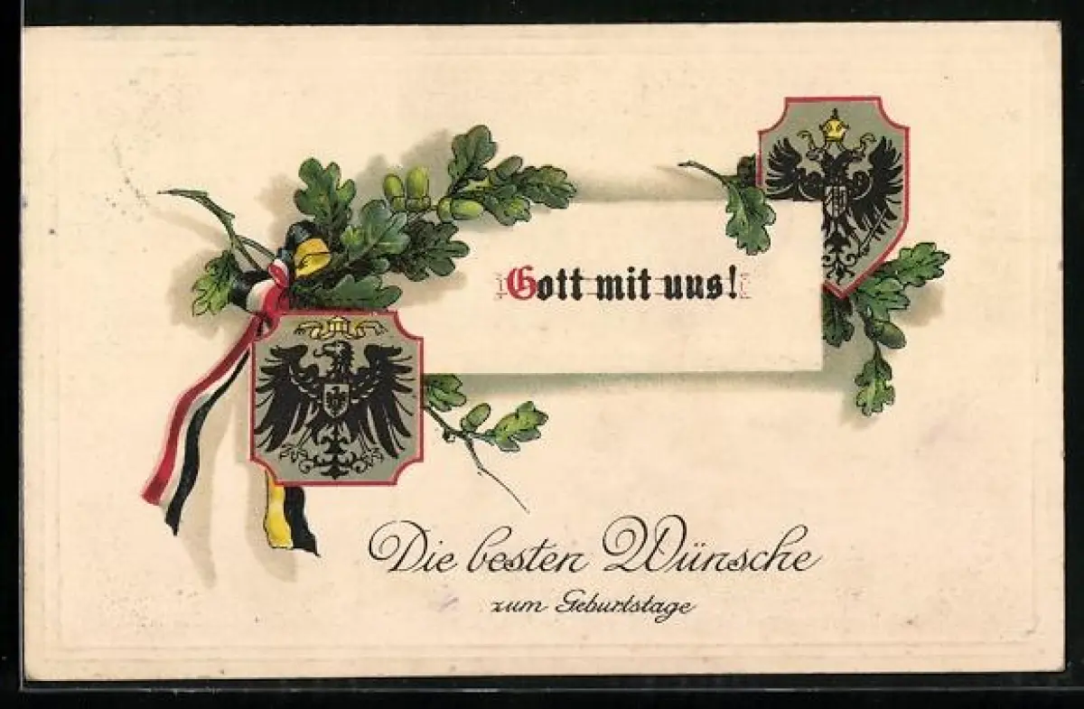 AK Gott mit uns, Wappen und Eichenzweige, Zweibund