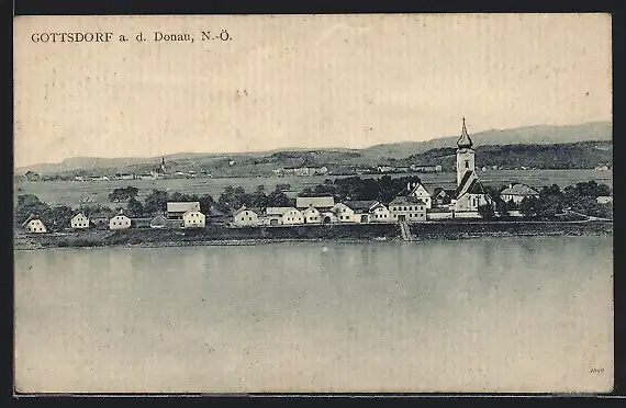 AK Gottsdorf a. d. Donau, Panorama mit Kirche