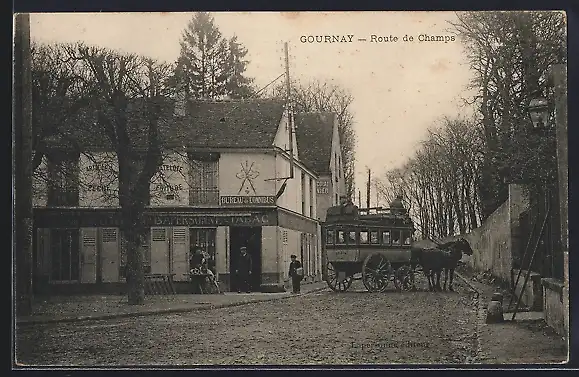 AK Gournay, Route de Champs avec diligence devant le bureau de tabac