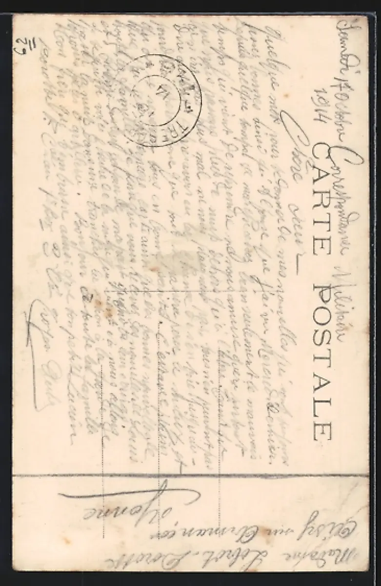 alte Ansichtskarte, gelaufen 1914, Eckknicke li. unten, Abriebspur li. oben, guter Zustand