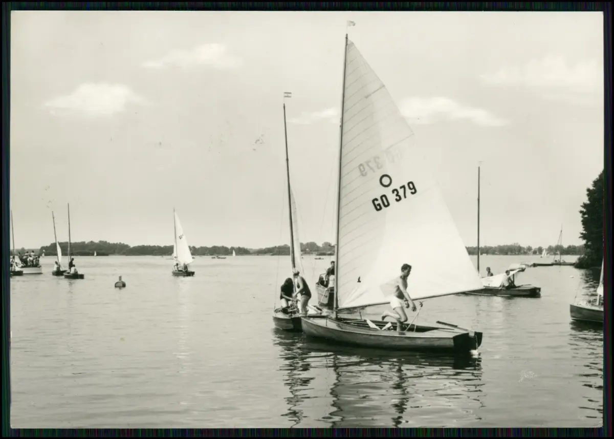 Originale Aufnahme aus den 1960er Jahren mit Segelbooten auf dem Schwielochsee, einem der größten natürlichen Seen Brandenburgs. Goyatz liegt am Südwestufer und ist ein traditioneller Erholungsort. Schwielochsee – größter natürlicher See Brandenburgs)