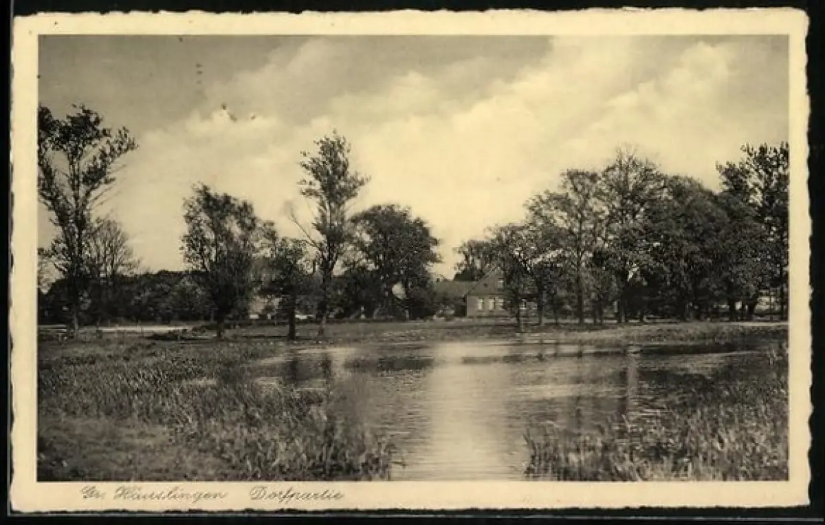AK Gr. Häuslingen, Dorfpartie mit Teich