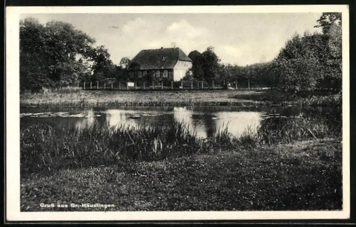 AK Gr.-Häuslingen, Teich mit Wohnhaus
