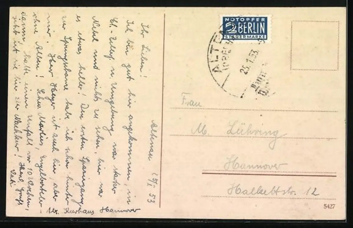 alte Ansichtskarte, gelaufen 1953, guter Zustand