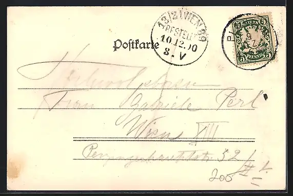 alte Ansichtskarte, gelaufen 1900, Bugspur mittig, guter Zustand