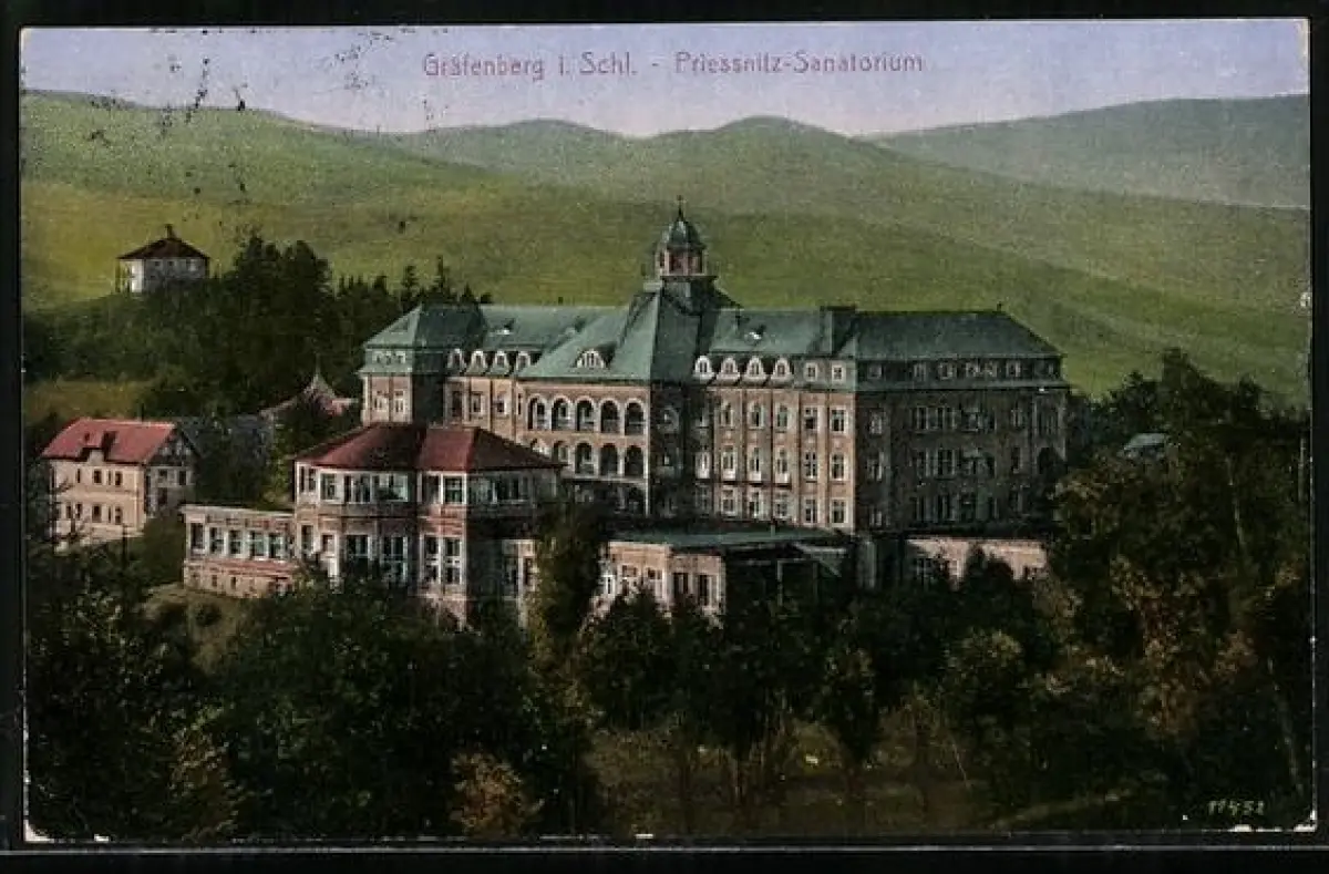 AK Gräfenberg i. Schl., Priessnitz-Sanatorium aus der Vogelschau