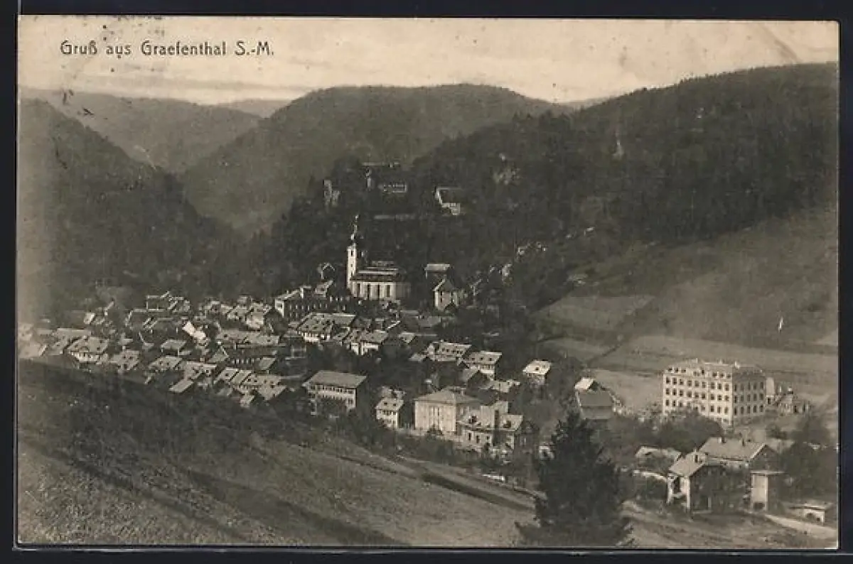 AK Gräfenthal S.-M., Ortsansicht mit Kirche und Schloss