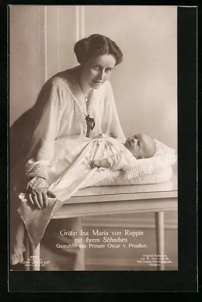 AK Gräfin Ina Maria von Ruppin mit ihrem Söhnchen als Säugling