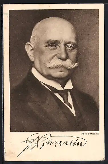 AK Graf Zeppelin, portraitiert mit Schnurrbart und Binder