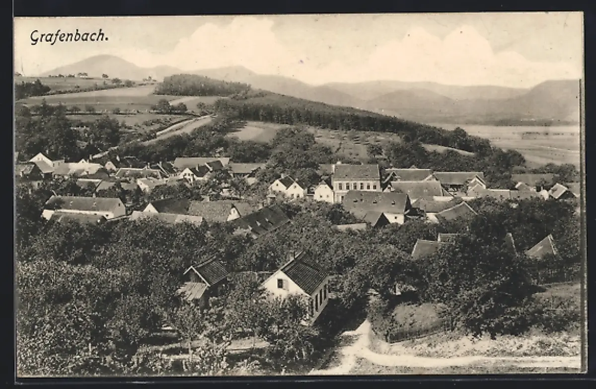 AK Grafenbach, Gesamtansicht mit Fernblick aus der Vogelschau
